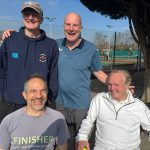 Over 60’s men won against Bearstead, who are the league winners. We then had lunch outside in the sunshine. The team playing were Greg Gadd, Richard Kershaw, Hessam Khoshnevisan and Rob Thomas. Thanks for the photo.